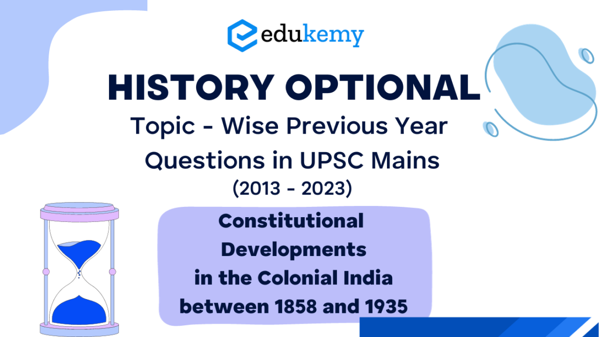 History is a subject that not only takes us on a journey through time but also allows us to understand the intricate web of events that have shaped the world we live in today. In the realm of competitive exams, especially the UPSC (Union Public Service Commission) Mains, history becomes a critical domain of study. One of the most popular optional subjects for UPSC aspirants is History, and within this vast subject, a fascinating segment lies in the constitutional developments of colonial India between 1858 and 1935. To conquer this segment, aspirants often turn to previous year questions to glean insights into the pattern, depth, and scope of questions asked by the UPSC. In this blog series, we embark on a historical journey through past UPSC Mains papers, specifically delving into the questions related to constitutional developments in colonial India between 1858 and 1935 from 2013 to 2023. Whether you are a history enthusiast, an aspiring civil servant, or simply curious about this intriguing period in India’s history, join us in this exploration of past exam questions, their significance, and the knowledge they offer to those preparing for the UPSC Mains examination.